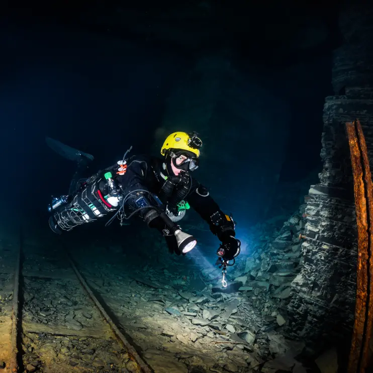 As lately I am doing loads of mine dives, where often we are the first visitors since the place flooded, the lack of bubbles helps a lot to keep the visibility good! And the sidemount rebreather allows me to squeeze through small passages in the mines.