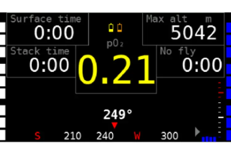 Diluent pressure – graphically represented pressure in the diluent tank (white bar graph).