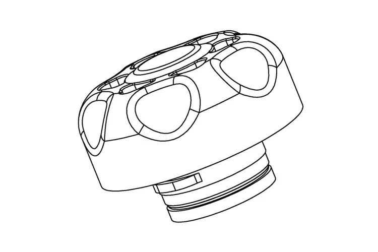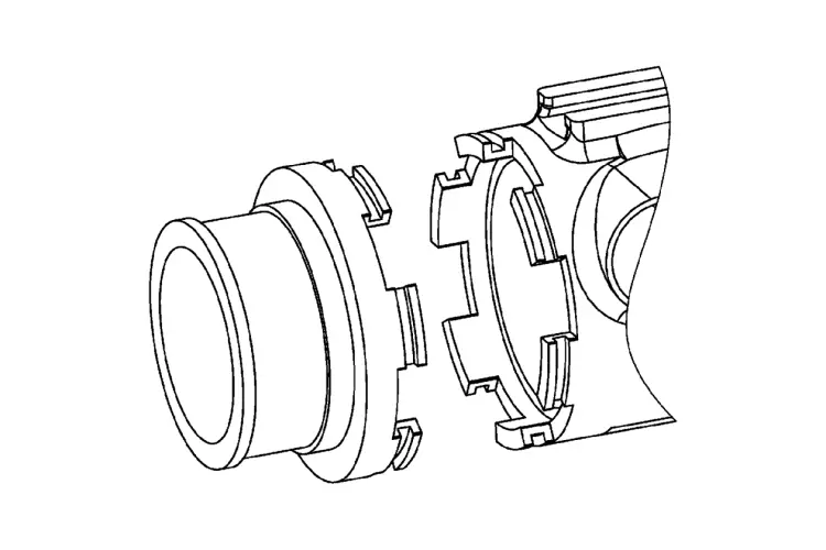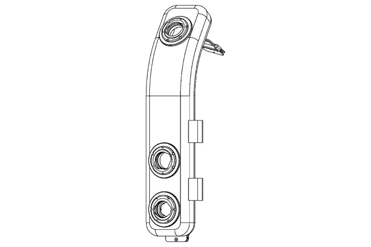 Unlike almost all other bayonet connectors on the CCR Liberty, the bayonet connector on the exhalation side has three protrusions. This design prevents incorrect attachment of the hoses, since the inhalation side has only two protrusions.