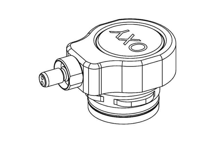 The oxygen cylinder valve has a M26×2 200 bar outlet connection according EN 144-3. The valve is not compatible with standard 12209:2013 (formerly also known as DIN) valves to eliminate possible mix-up between oxygen and diluent cylinders, this is a requirement of the EN 14141 norm.