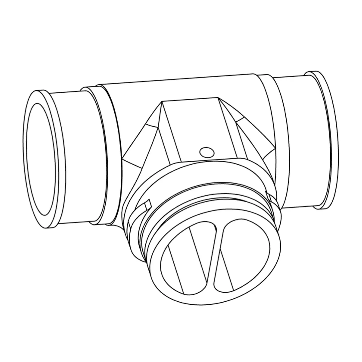 The T-pieces have standard bayonet connections. On the exhalation side, the T-piece has a partition that directs any water that has entered the DSV to the exhalation bag and improves the blending of the mixture when oxygen is added via the manual bypass valve.
