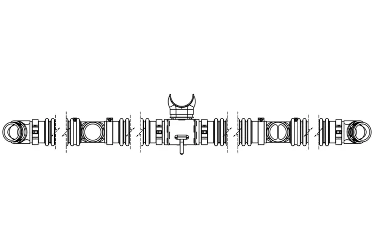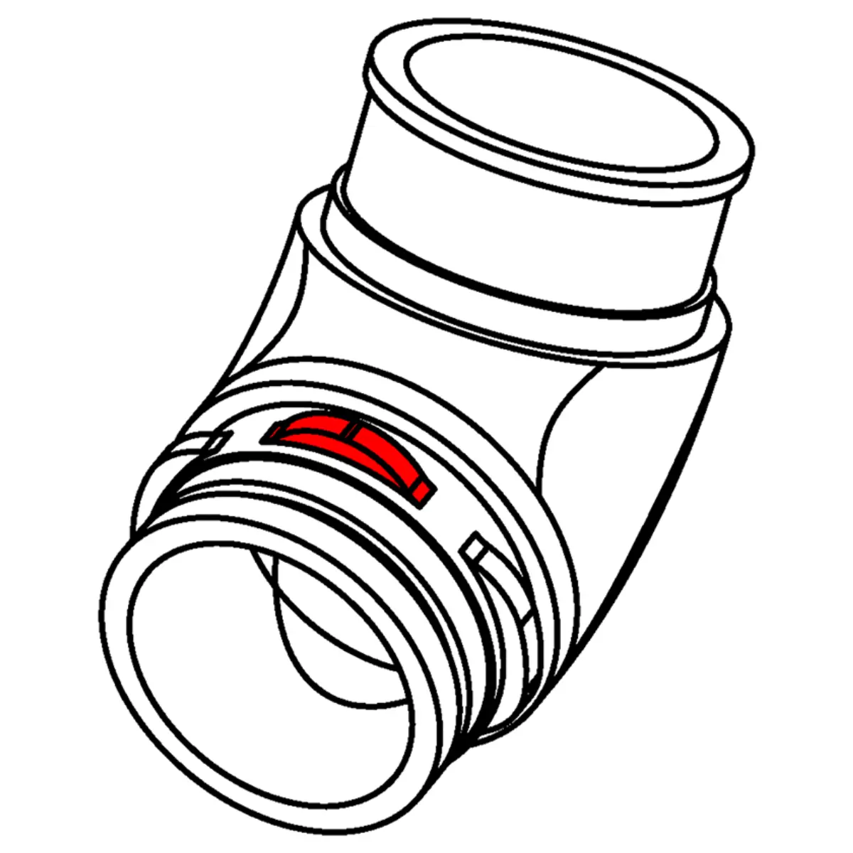 The DSV attachment to the corrugated hoses is done with axial teeth that fit together and are secured with a wire retaining ring.