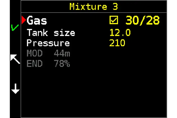 Switched to an OC mixture, automatic notification immediately after gas switch in menu as a confirmation of a successful gas switch.