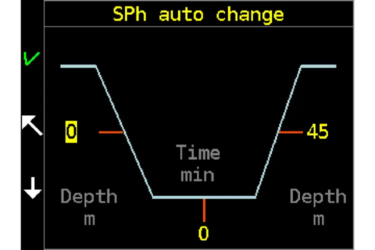 Automatic switch to high setpoint, you may set a depth in descent, after a time or depth in ascent.