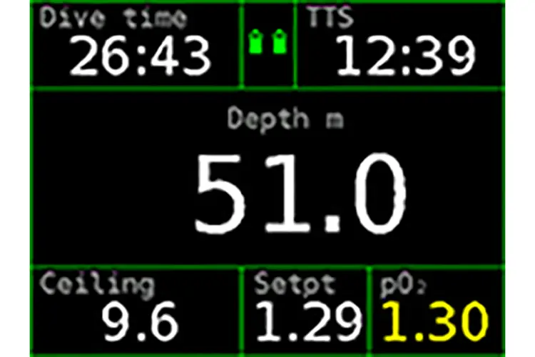 If you need to prolong your stay underwater, reaching the CNS limit, you can lower the setpoint to find a compromise between oxygen exposure and decompression time.
