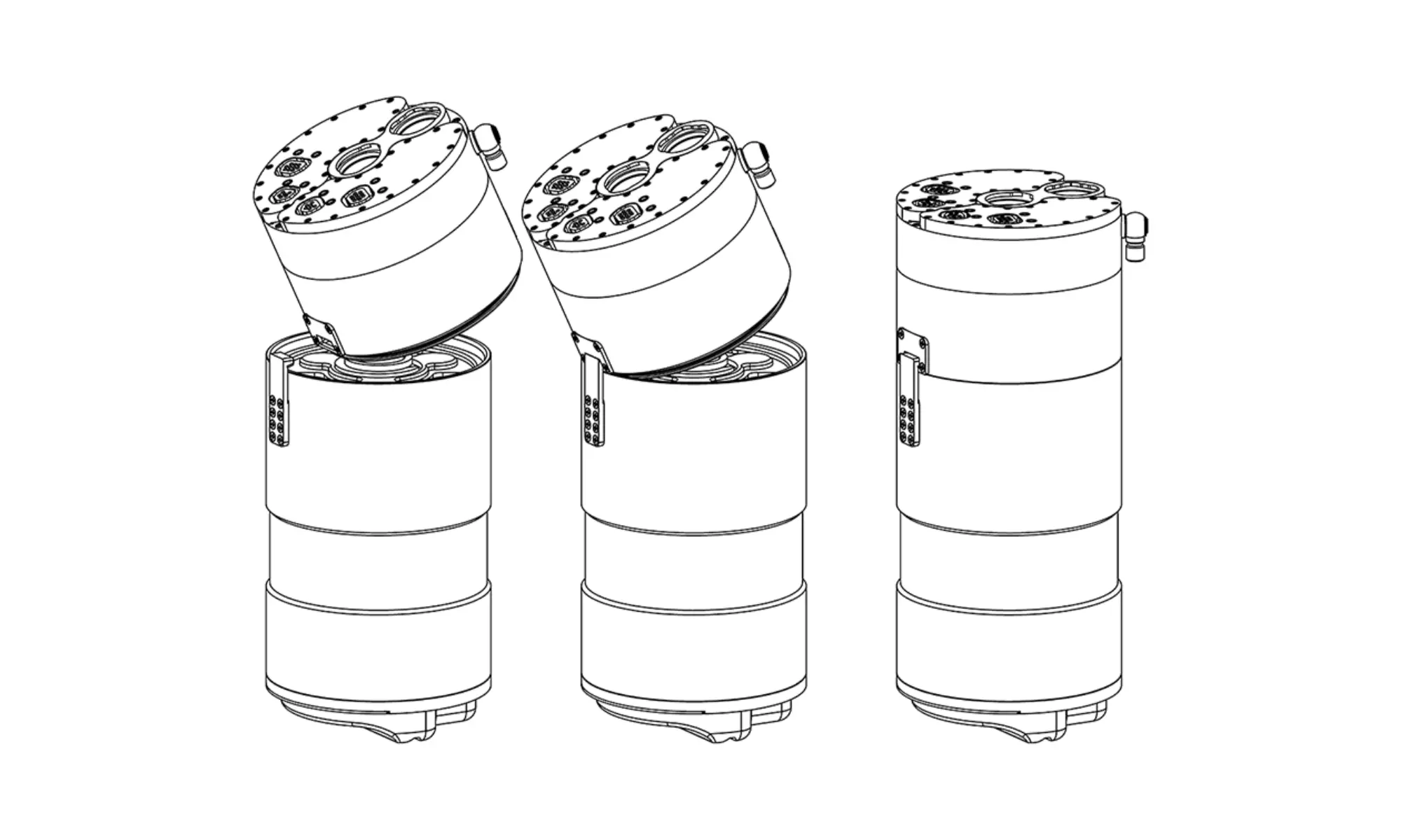 Place the body of the rebreather in the carrier so that both pins on the carrier fit into the openings of the head and the canister. This step is crucial. For safety reasons, It is necessary to carefully check that both pins fit into both holes and the head is secured against disconnection. Disconnecting the head and the canister will cause fatal flooding.