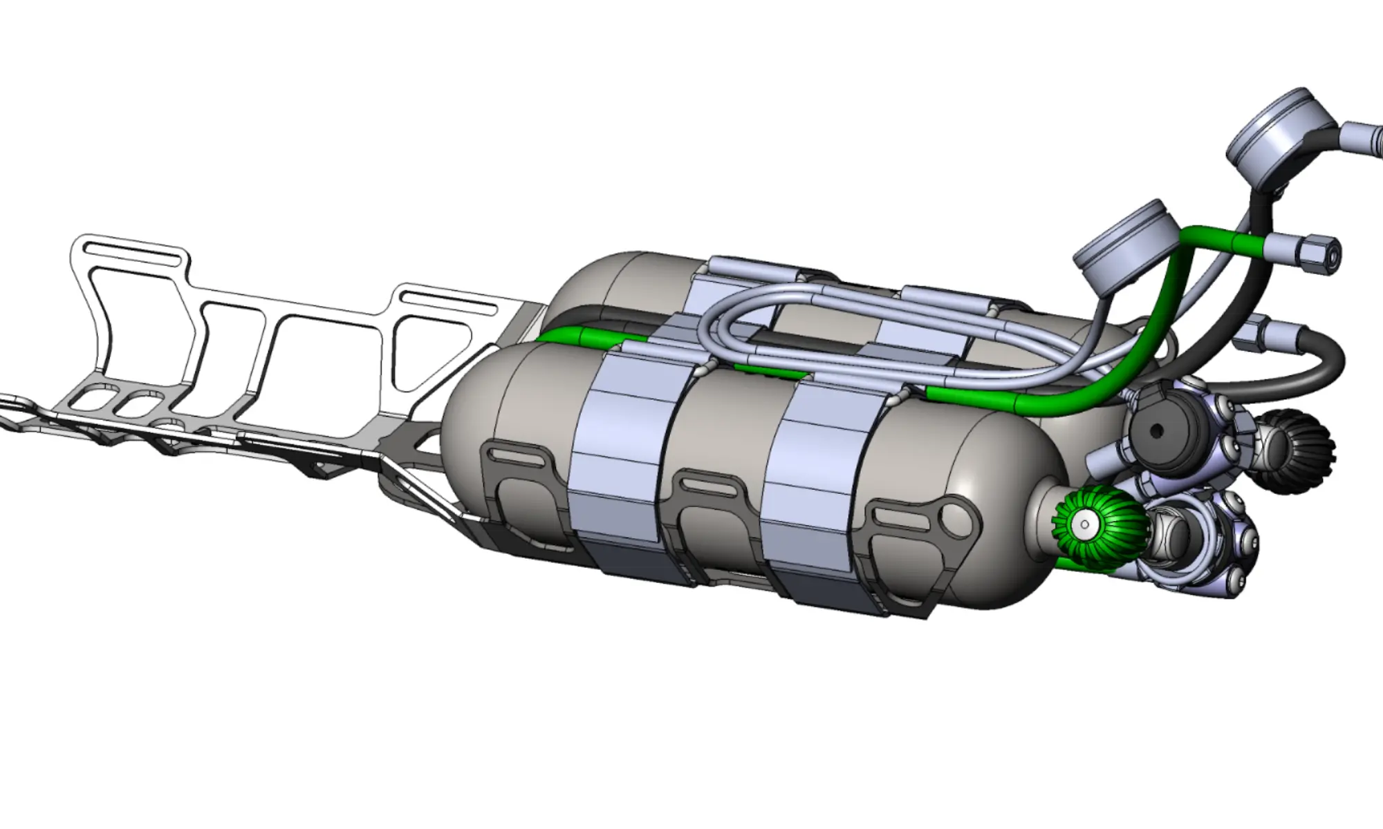 Liberty Sidemount can be used in a number of different configurations consisting of mutually compatible parts. The device’s own configuration can be created in the online configurator https://ccrliberty.com/configurator.