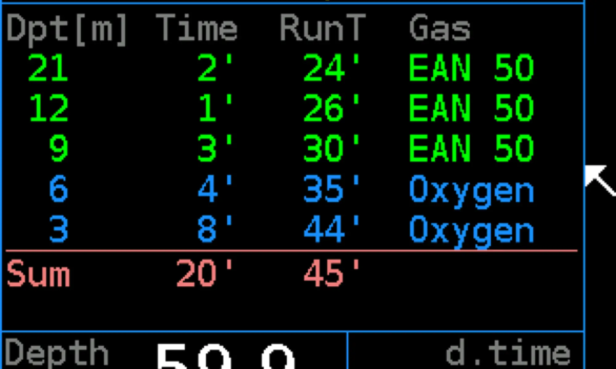 03.2.5 Dive profile screen