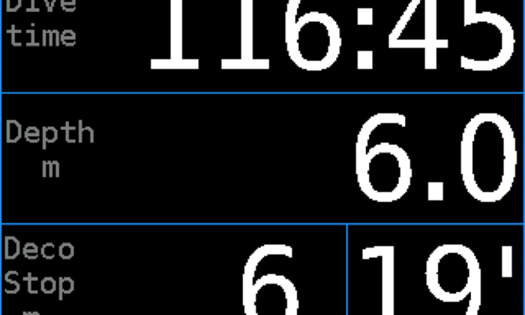 Do not disable error messages and notifications related to decompression if the games are played during a deco stop. Ensure to not accidentally reposition while playing during a dive. Check the pressure gauges on a regular basis. Playing a game will reduce your attention. Remember: you want to decompress safely, not just achieve a higher level in the game! The games were tested on children. Nobody was hurt.