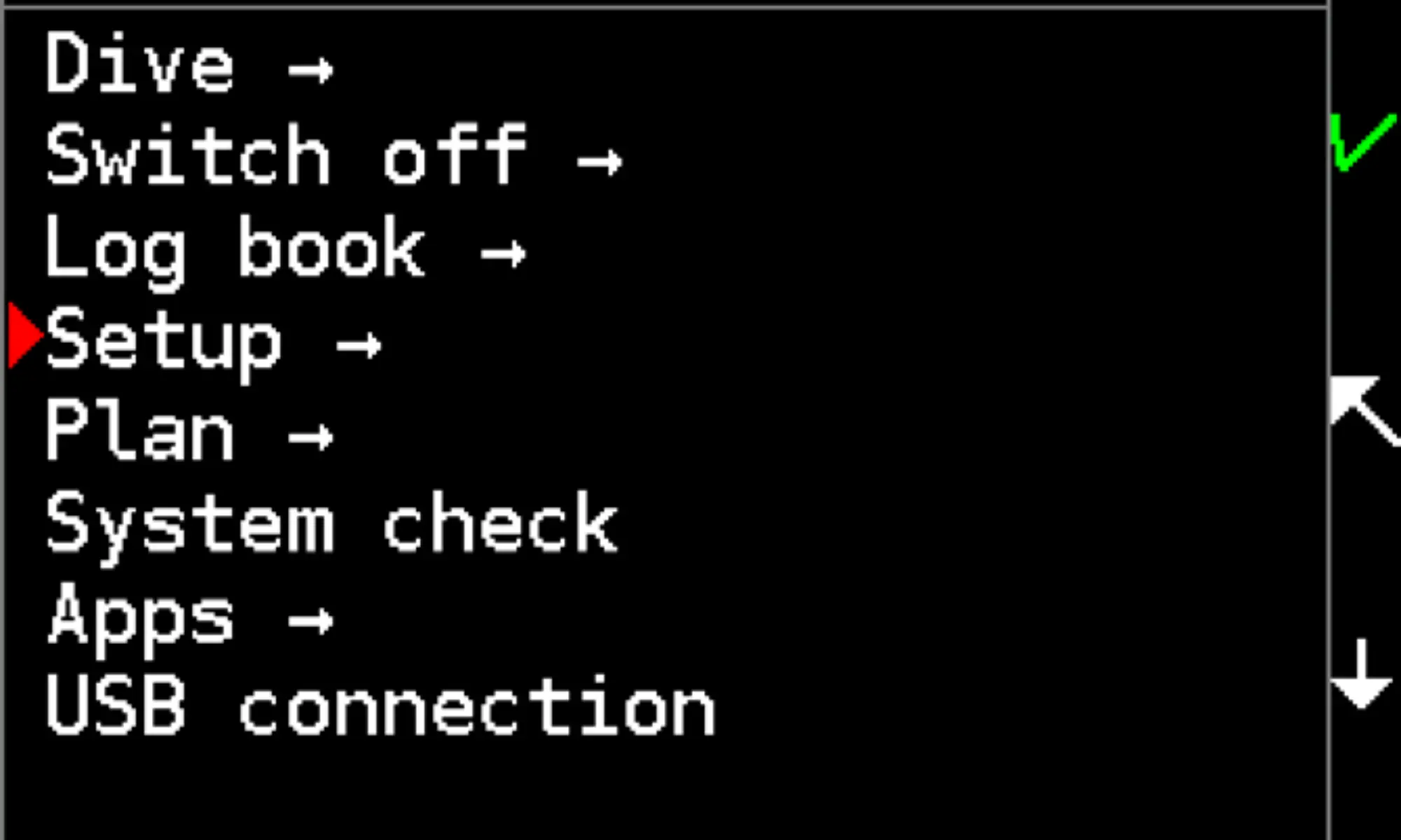 Switches the computer into USB link mode for downloading dive logs. Freedom will report as a Mass storage device when connected by cable to a personal computer.
