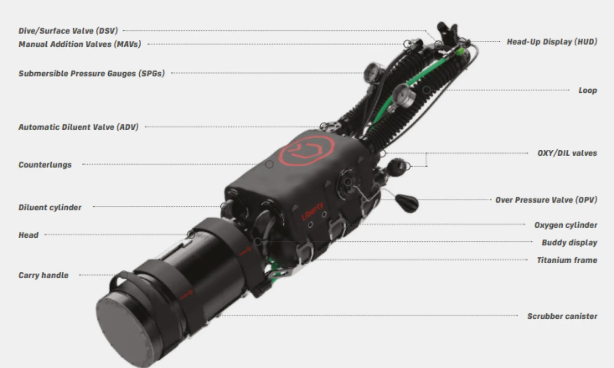 Each component has been specifically designed to build the most capable rebreather on the market. The freedom of having built and designed the CCR Liberty from the electronics to each detailed component allowed us to move away from old principles and think outside the box. This way of thinking to use principles of redundancies from the aerospace industry allowed us to create a truly exceptional machine with features that make the CCR Liberty a paradigm shift among rebreathers.