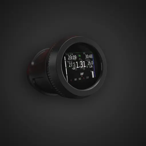 Displays your PPO2 information while in dive mode and other information in standby mode. The HUD incorporates a rotating shade and has a colour-blind mode. Alternative to the HUD is ODA – Optical Display Adapter which displays your dive information on the screen right in front of your eye.
