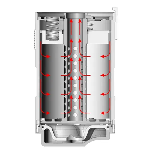 The automatic diluent valve functions on the same principle as a standard regulator. The membrane inside will depress when it is affected by negative pressure, opening a valve that adds diluent into the loop.