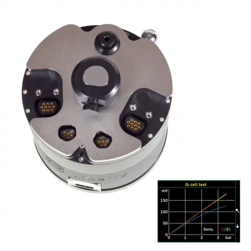 Turn your head into an oxygen cell tester and check the weakest part of your rebreather, the oxygen cells. The testing set uses the CCR Liberty head, which it changes to an electronically controlled pressure chamber. It automatically measures values in 1,00 to 3,50 bar pressures. The result is displayed in a simple chart.