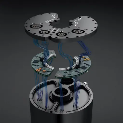 The unit uses 2 Oxygen sensors for each control unit located in a sealed block. Using a smart algorithm the unit compares one cell with the other 3 cells and then performs the same test on each remaining cell. This process is constantly repeated throughout the dive. In the case that one cell shows different values it’s excluded from the system, though still monitored, and the diver is informed by vibration alerts. In the case that the cell is just temporarily lagging, and starts operating again, the unit will vote the cell back in. The diver can exclude/vote in the cells manually.