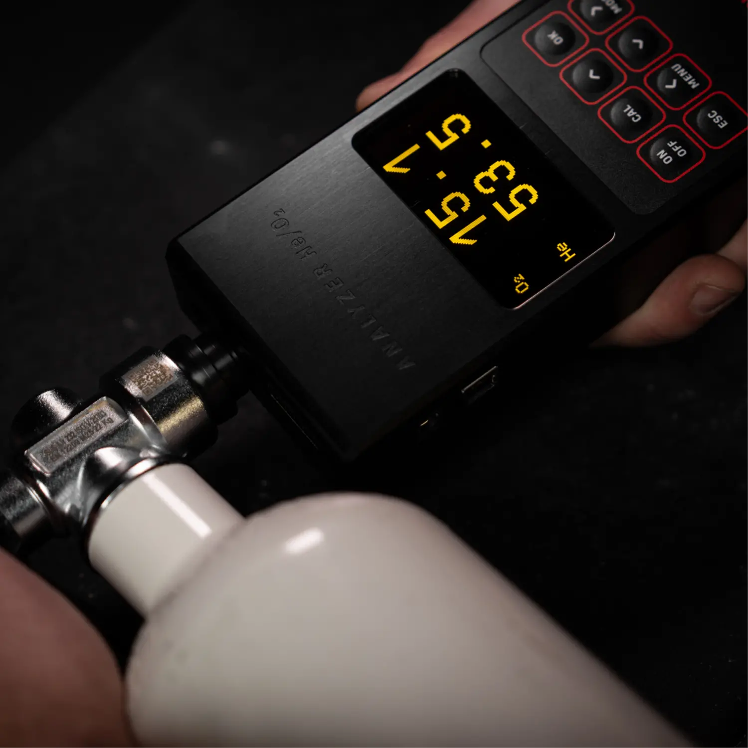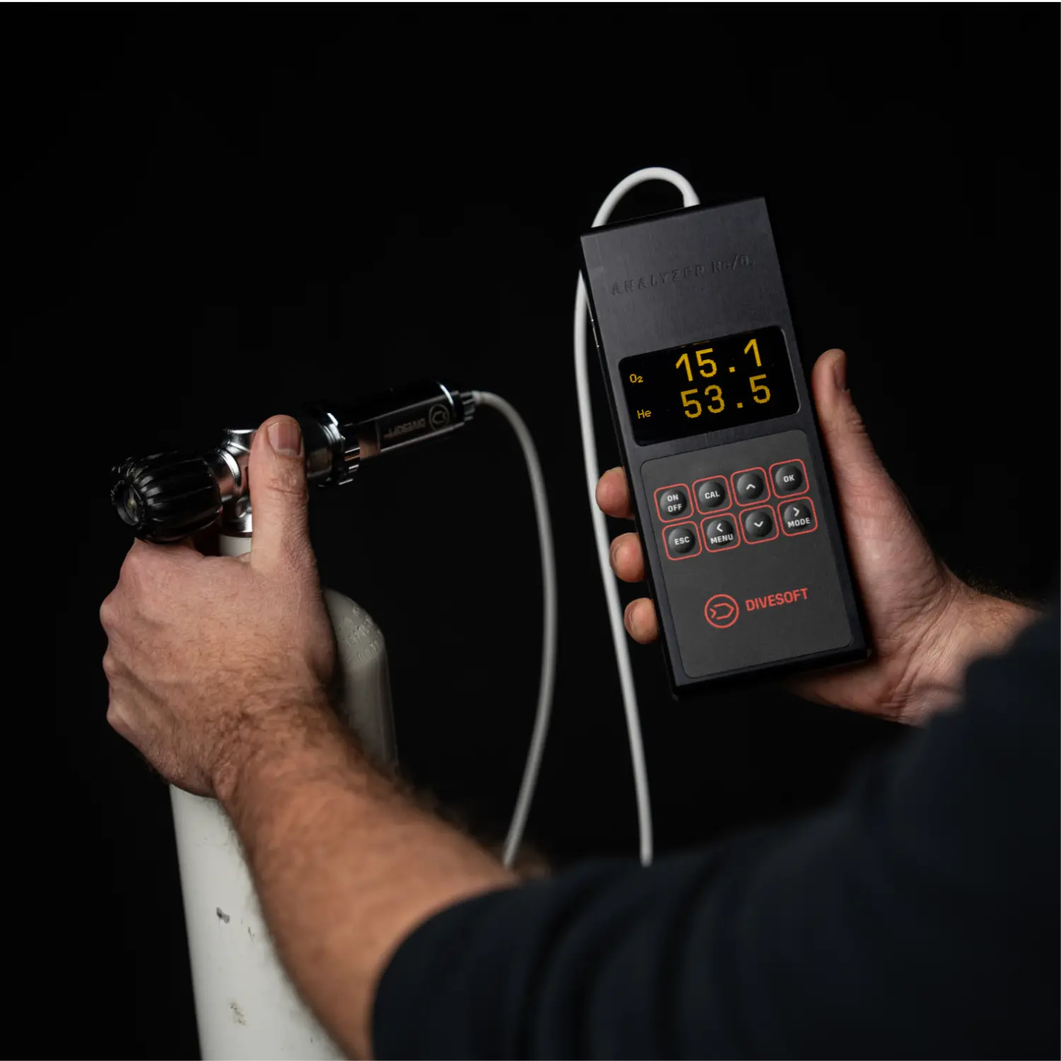 Trusted by divers and blending stations around the world. He/O2 analyzes oxygen and helium and shows the results directly on the display. Know the mix. Start the dive.