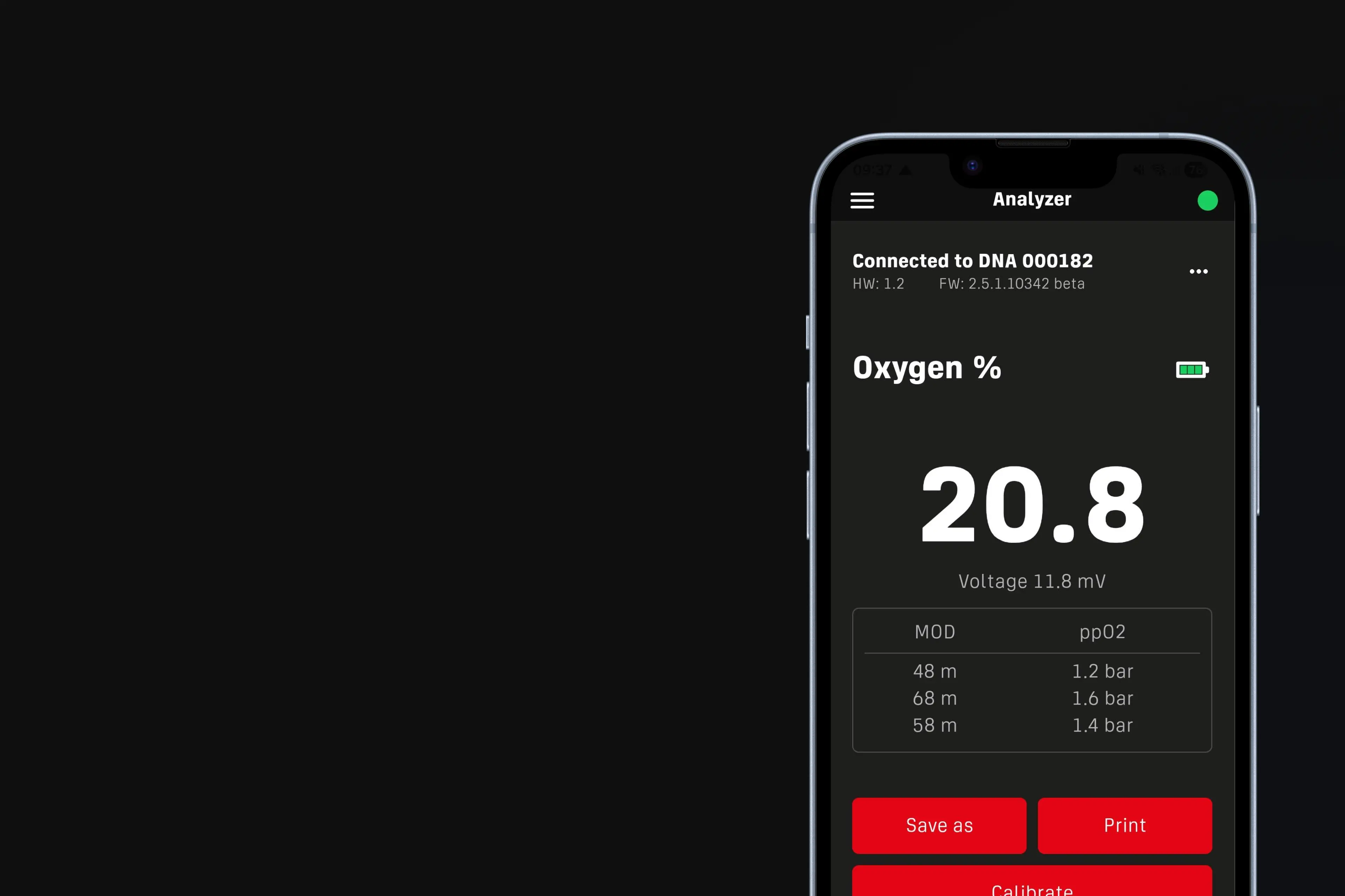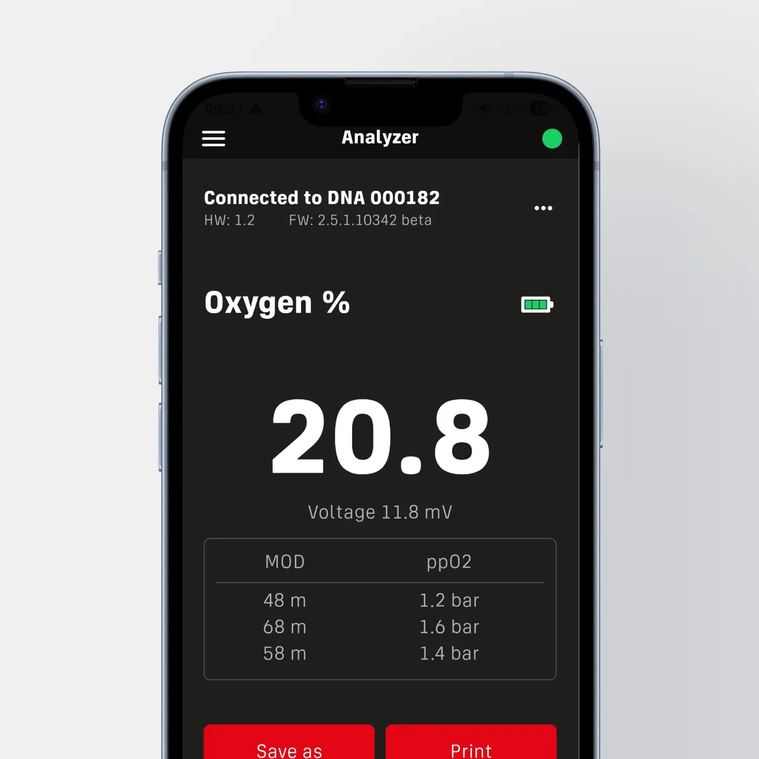 Store analyzed gas mixtures directly in the app and keep your breathing gases organized.