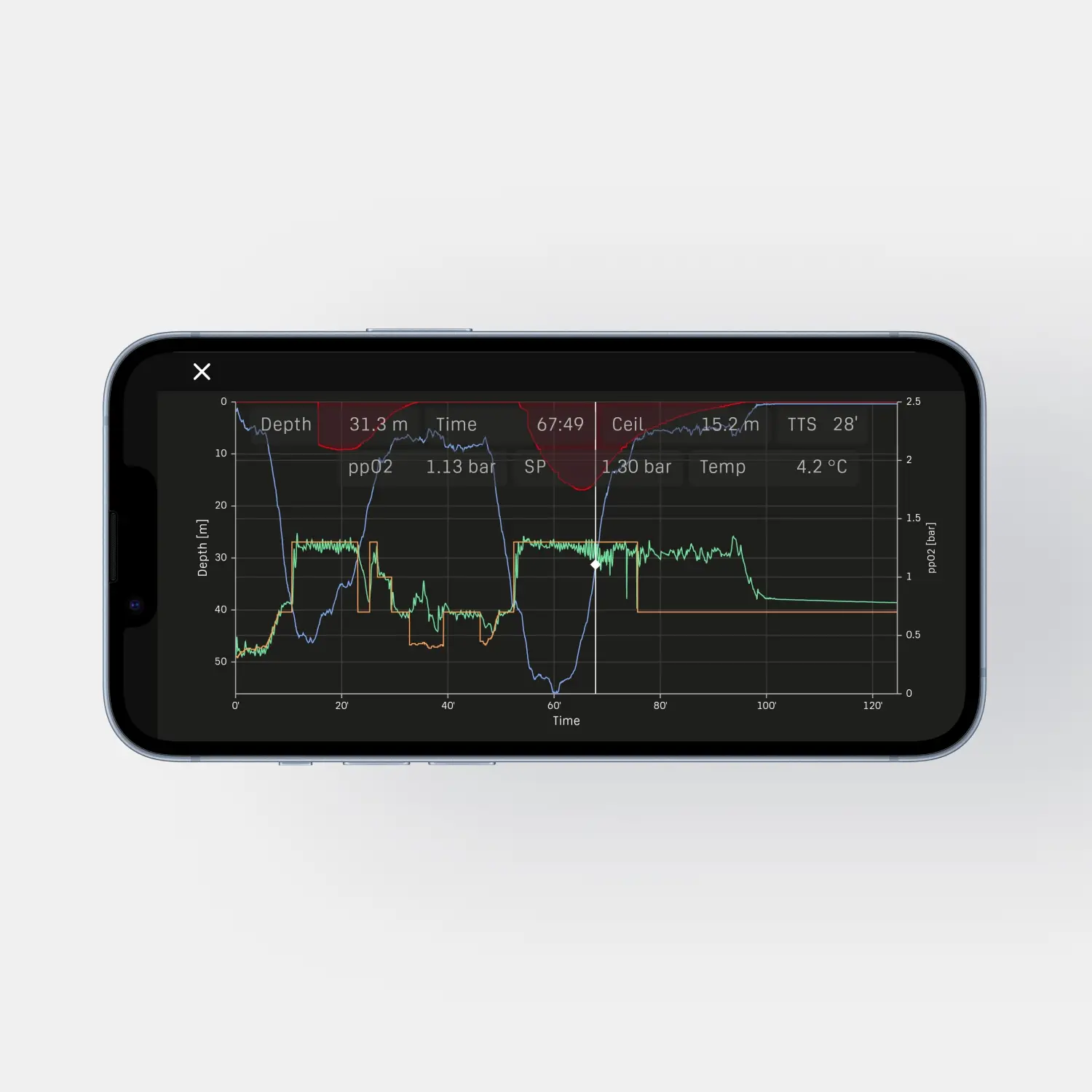 Explore detailed dive profiles, depth history and key dive parameters after every dive.