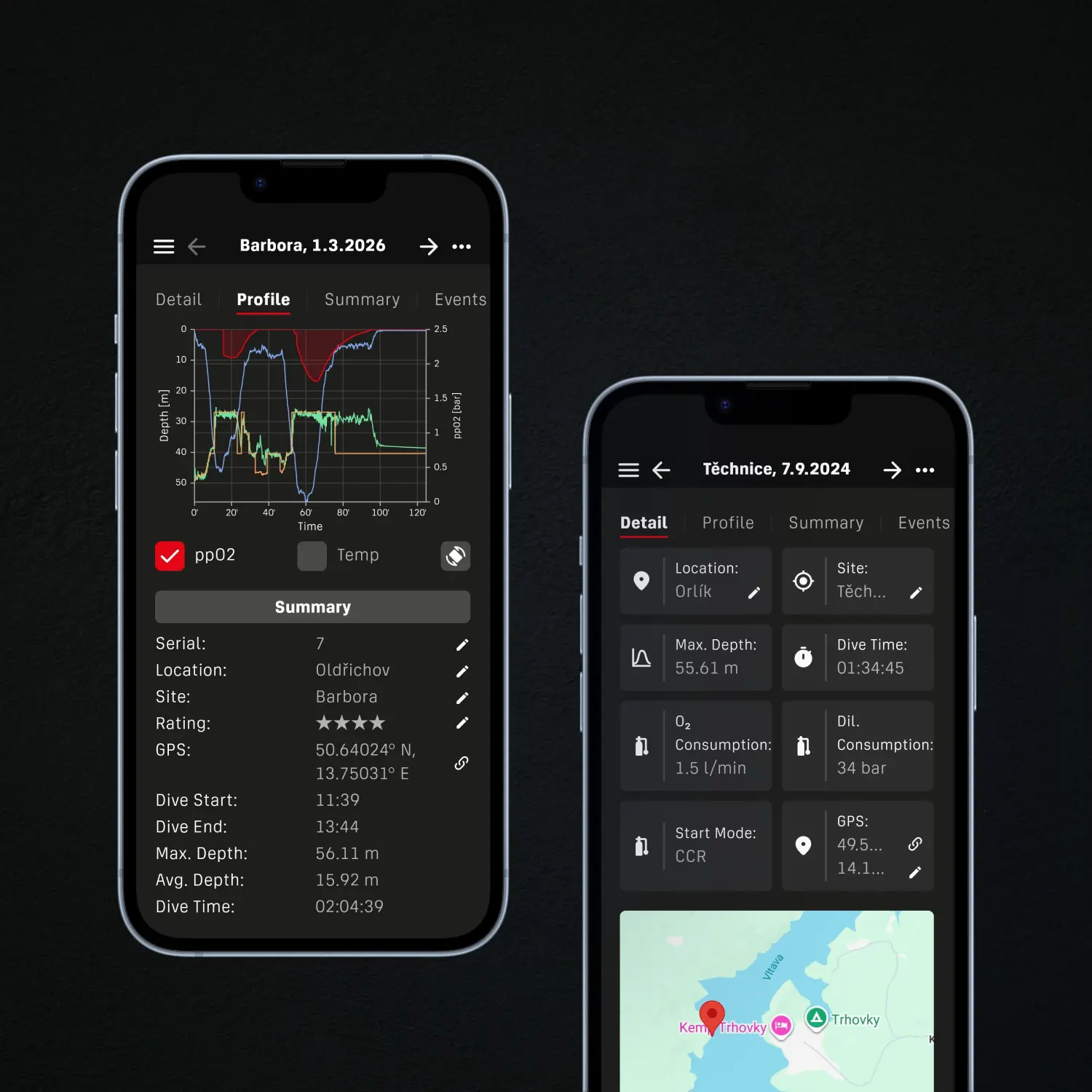 Whether you dive with Divesoft equipment or simply want a better way to organize your dives, the app keeps everything in one place.