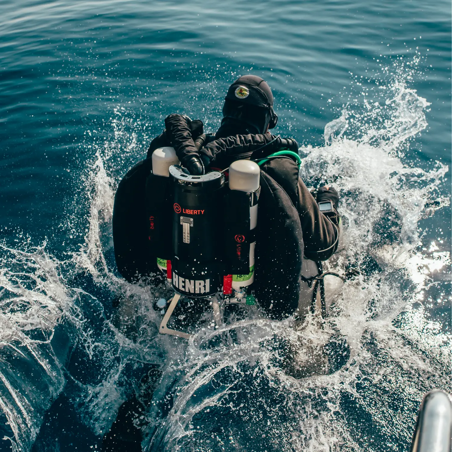 Liberty rebreather is powered by two independent battery systems, each supporting one control side. If one battery becomes unavailable, the other continues supplying power, allowing you to stay informed and manage the dive with confidence.